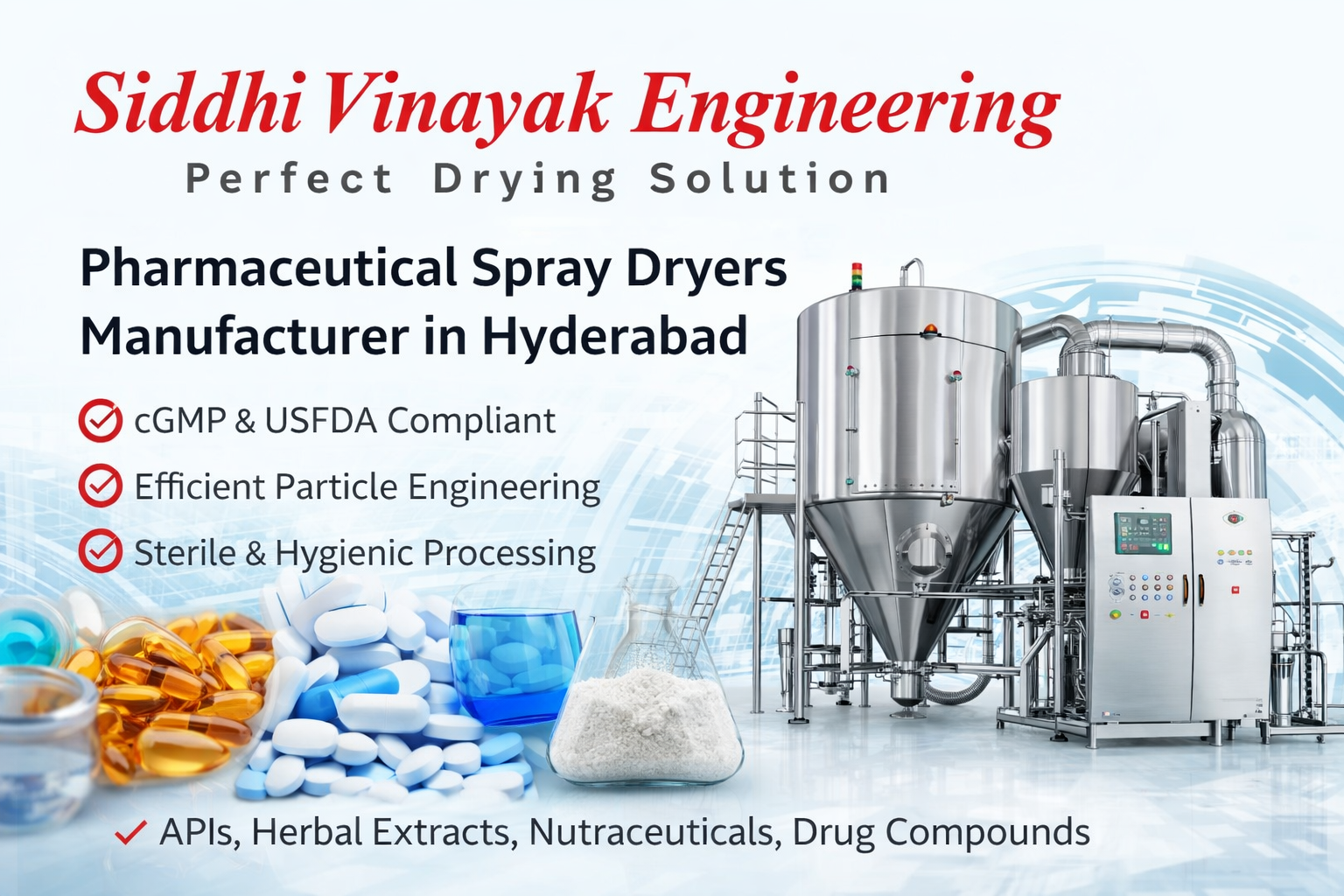 Looking for a high-performance Pharmaceutical Spray Dryer in Hyderabad to enhance your drug manufacturing process? Siddhi Vinayak Engineering provides advanced drying solutions specifically engineered for the pharmaceutical industry. Our machines ensure precise particle engineering, maintaining the chemical integrity of active pharmaceutical ingredients while delivering uniform, free-flowing powders ready for tableting or encapsulation.