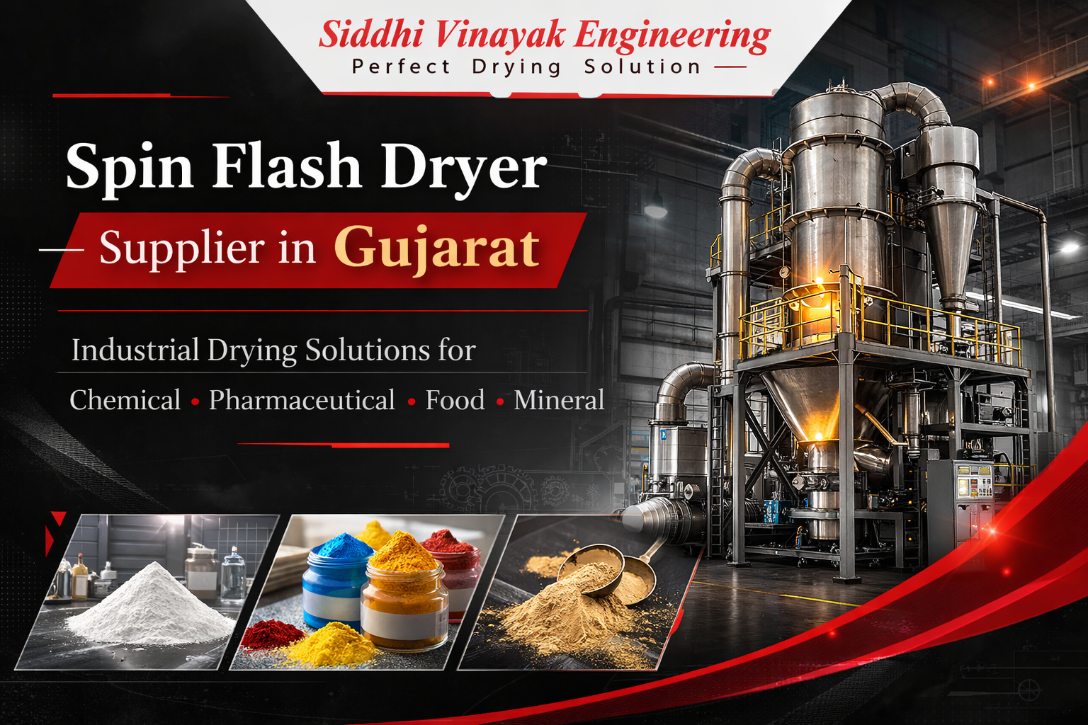 Siddhi Vinayak Engineering, based in GIDC Vatva, Ahmedabad, manufactures and supplies industrial drying systems including spray dryers, flash dryers, spin flash dryers, evaporators, fluid bed dryers, hot air generators, and related process equipment.