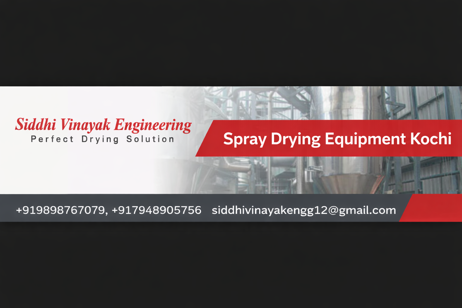 Siddhi Vinayak Engineering, Ahmedabad, is a manufacturer, exporter, and supplier of Spray Drying Equipment, Spray Dryers, Pilot Spray Dryers, Flash Dryers, Spin Flash Dryers, Fluid Bed Dryers, Evaporators, Hot Air Generators, and allied systems. Contact us to configure a solution aligned to your feed properties, target moisture, throughput, and hygiene requirements for Kochi projects.